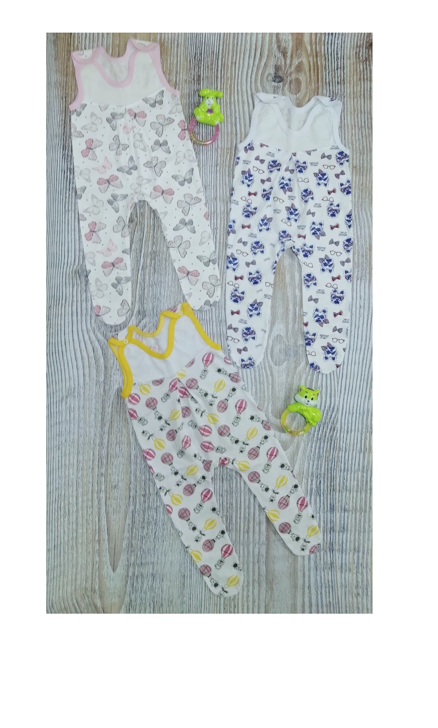 Ползунки выполнены из 100% хлопка (кулирка), сверху на кокетке, на плечиках на кнопочках.